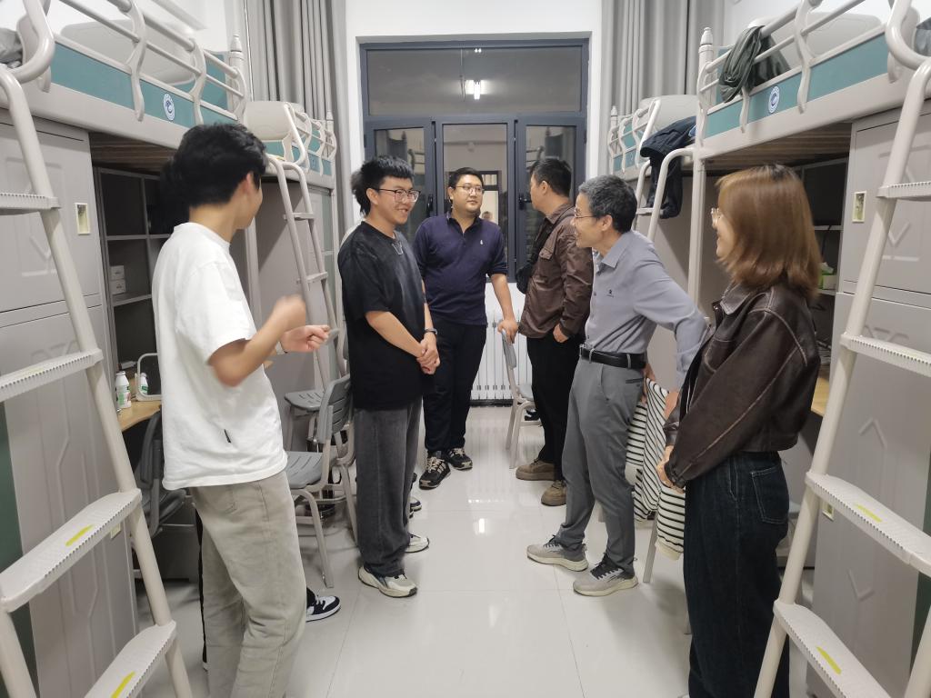 为更好地了解2025级员工的入学情况,及时了解新生的思想和生活状况,增进师生之间的沟通交流,不断提高公司教育、管理、服务员工的工作水平。9月8日晚,公司班子成员、辅导员、2025级新生班主任一行走访看望了若谷、新明公寓的新生。
