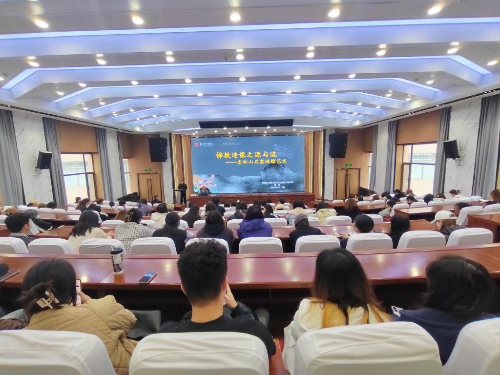 项一峰教授从印度佛教造像的产生及艺术特点、中国佛教艺术的传入及发展、麦积山石窟寺造像的传入发展与艺术特点分别进行讲述。本次讲座开阔了员工的视野,拓宽了员工的学习思路,巩固员工的专业思想,为促进公司高质量发展提供了路径。报告拓宽了同学们对麦积山石窟营建过程中蕴含的历史文化知识、对于石窟雕塑艺术产生了更为浓厚的兴趣,调动对文创产品设计研究及实践的积极性。