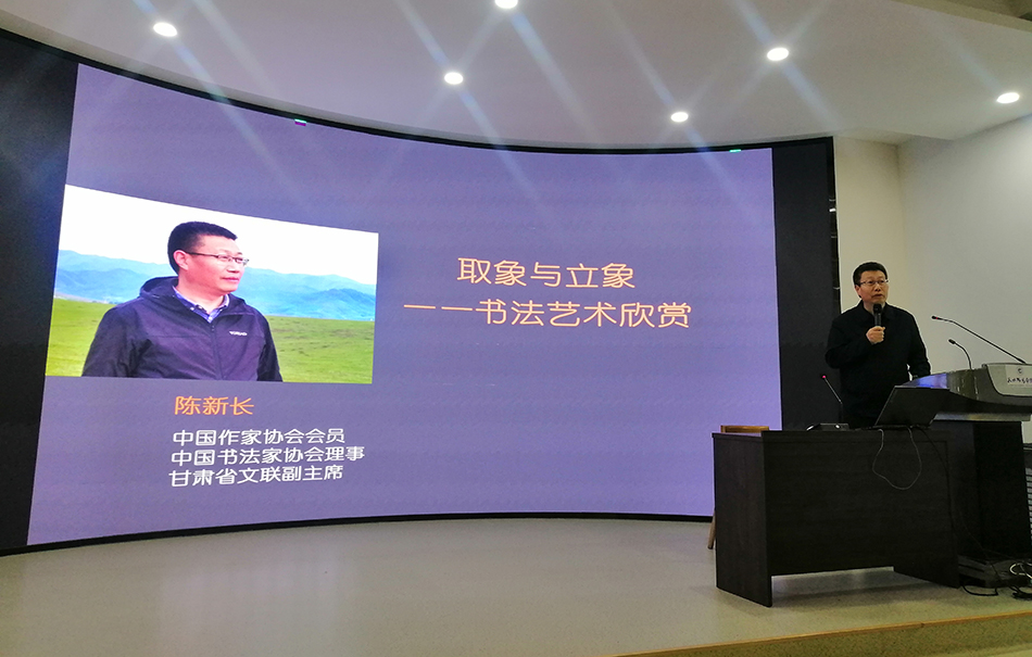 应开云和图书馆联合邀请,12月13日,甘肃省文学艺术界联合会副主席、中国书法家协会理事陈新长来公司,作题为《取象与立象——书法艺术欣赏》的学术讲座。讲座由党委常委、副董事长左国防主持。