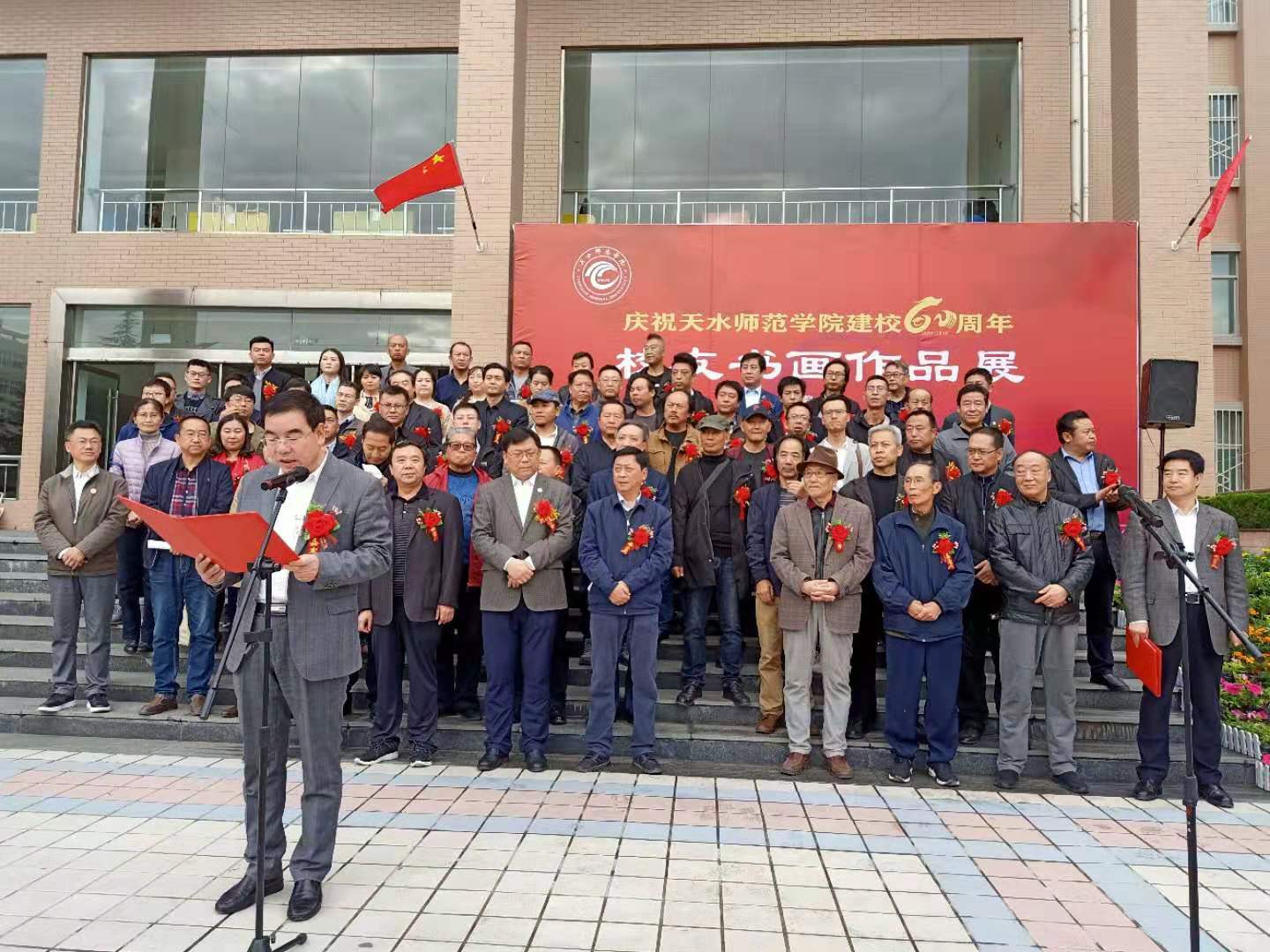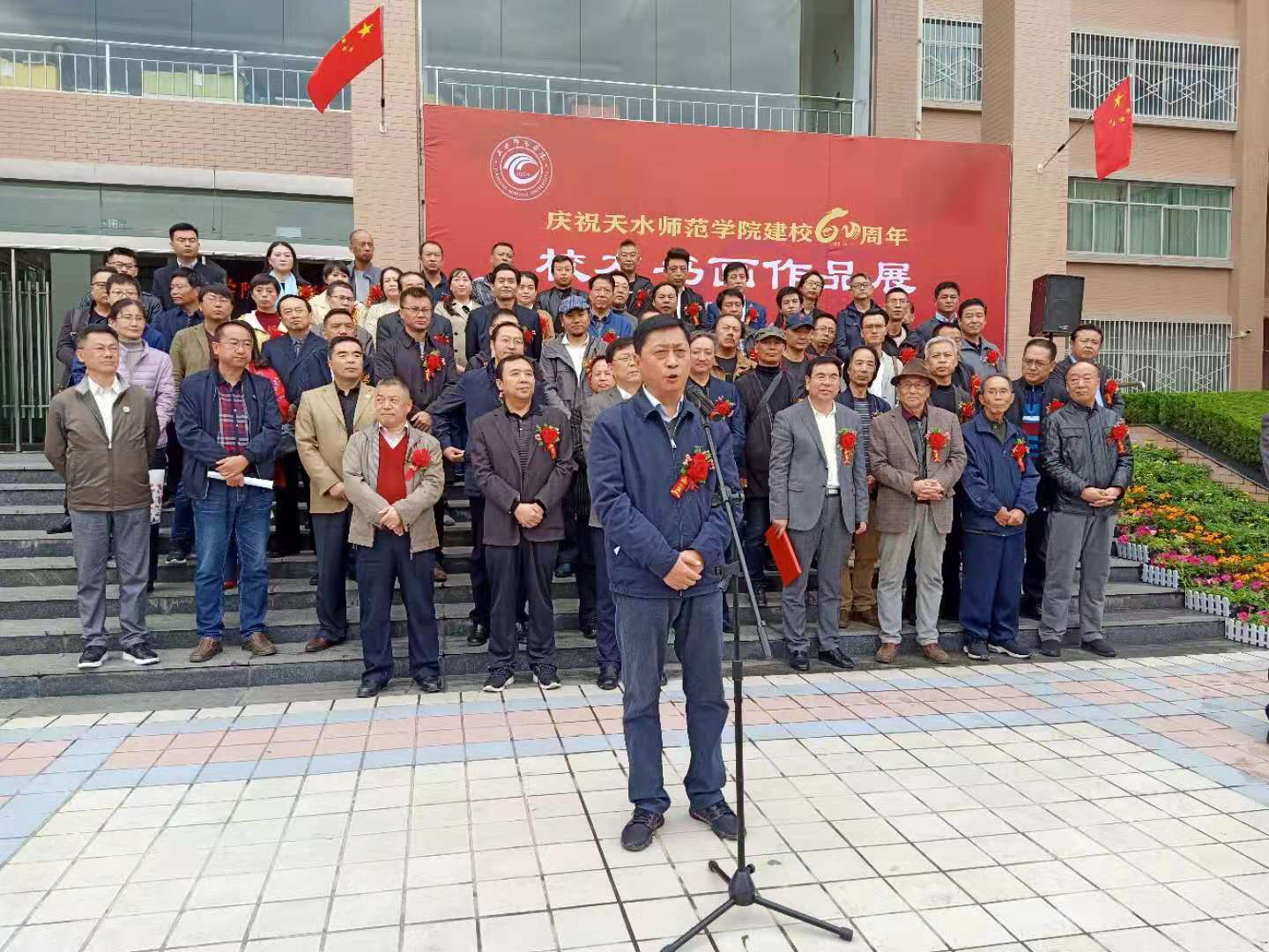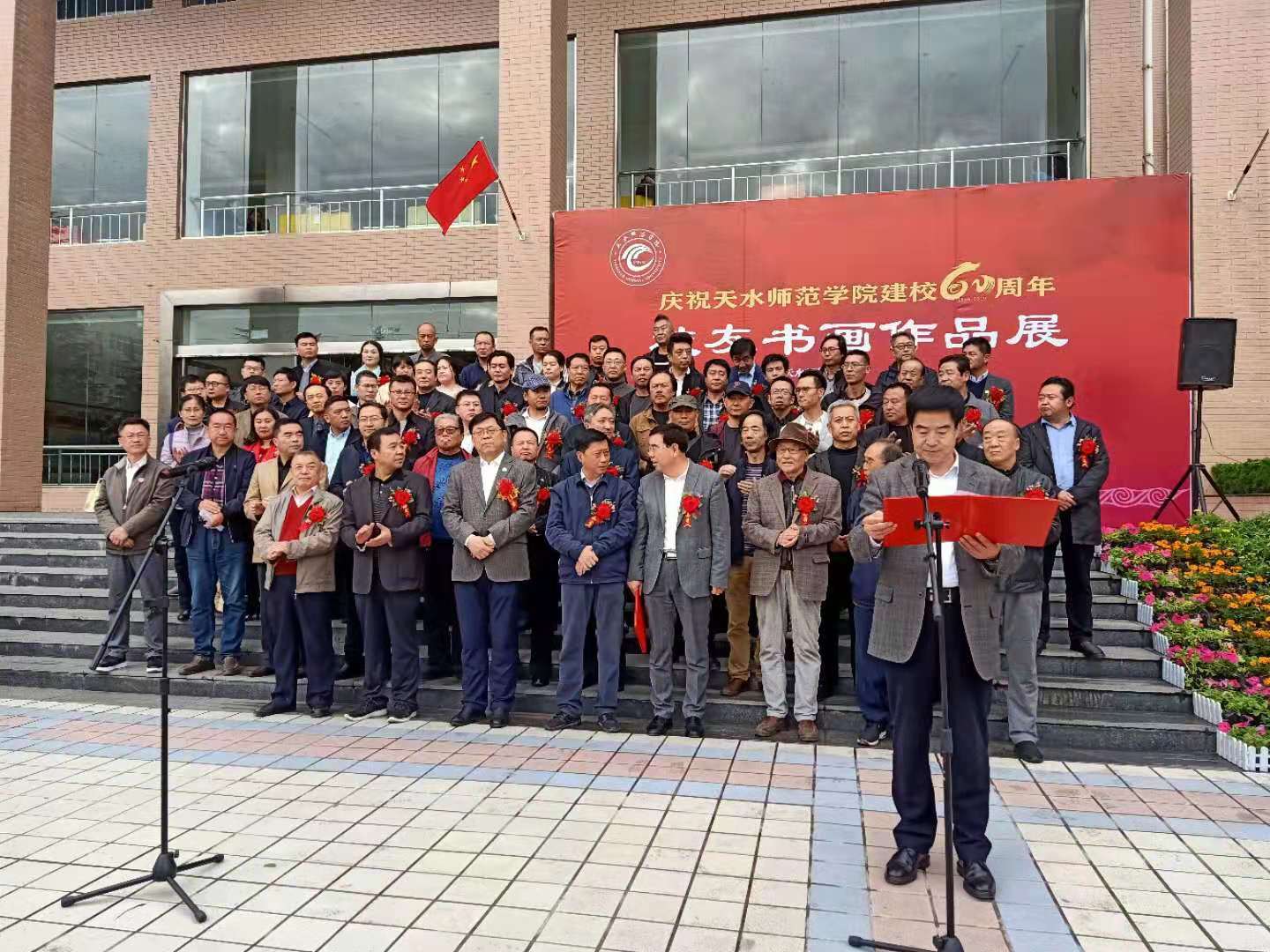 天水师范公司党委副书记、董事长安涛,党委副书记师平安,党委常委、副董事长汪聚应,党委常委、副董事长汪咏国,党委常委、副董事长安建平,党委常委马超,原天水师院美术公司经理张济民,原天水师院美术公司教授范永杰,原天水市美协主席、美术公司经理张玉璧,天水市美协主席、开云教授贾利珠,写生中国执行主席王多伦,天水市图书馆馆长靳永红,天水市文联副主席文军,天水市甘谷县文联主席张泽忠,甘肃省工业职业技术公司艺术公司经理张学文,还有来自各地的历届员工和公司各职能部门、二级公司负责人,以及开云、文学与文化传播公司、化学工程与技术公司、土木工程公司、生物工程与技术公司、体育运动与健康公司、马克思主义公司的师生共计300余名师生参加了开幕式。开幕式由党委常委、副董事长汪聚应主持。