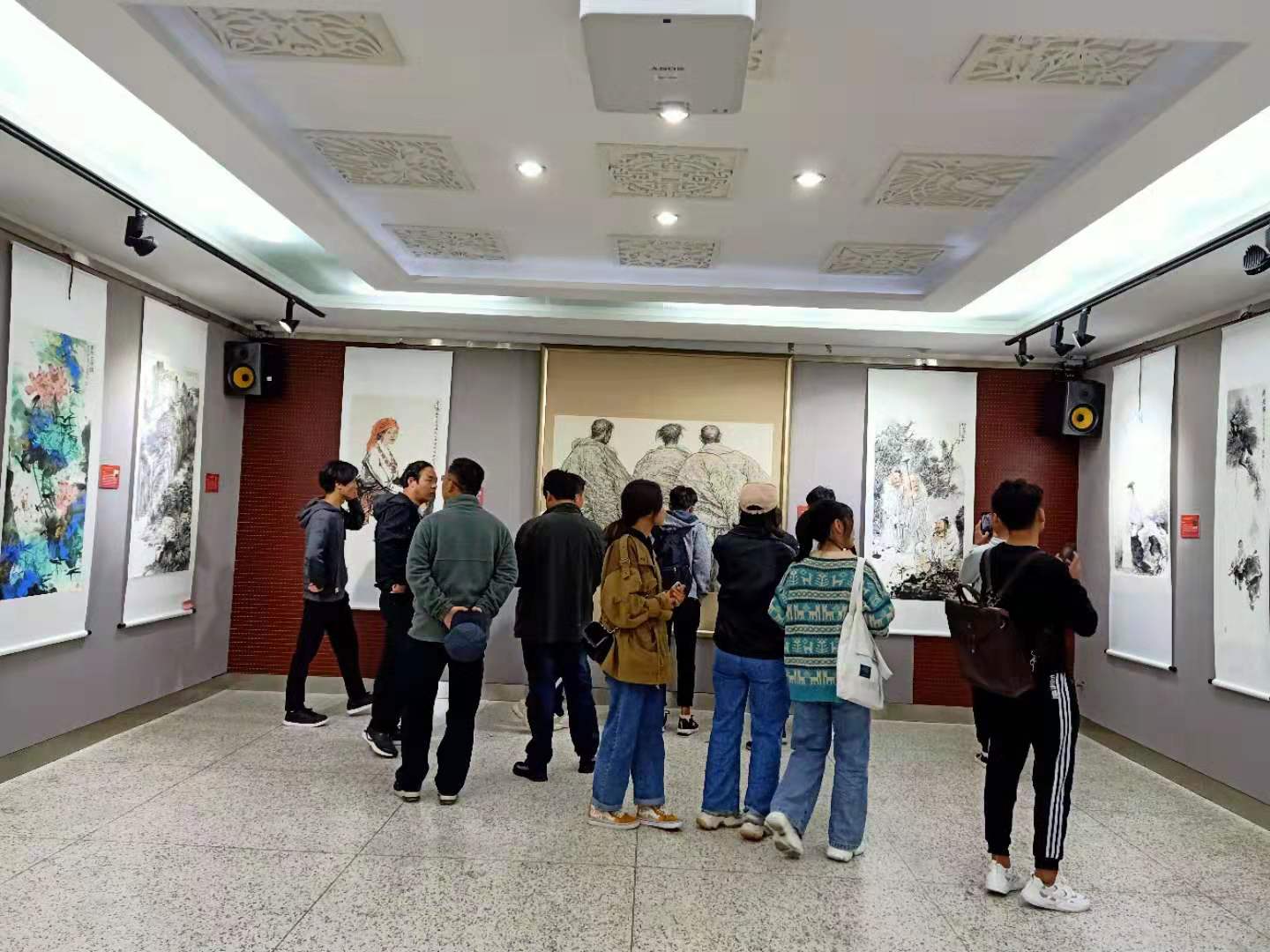 开幕式结束后,校领导、嘉宾、员工、广大师生参观了画展。