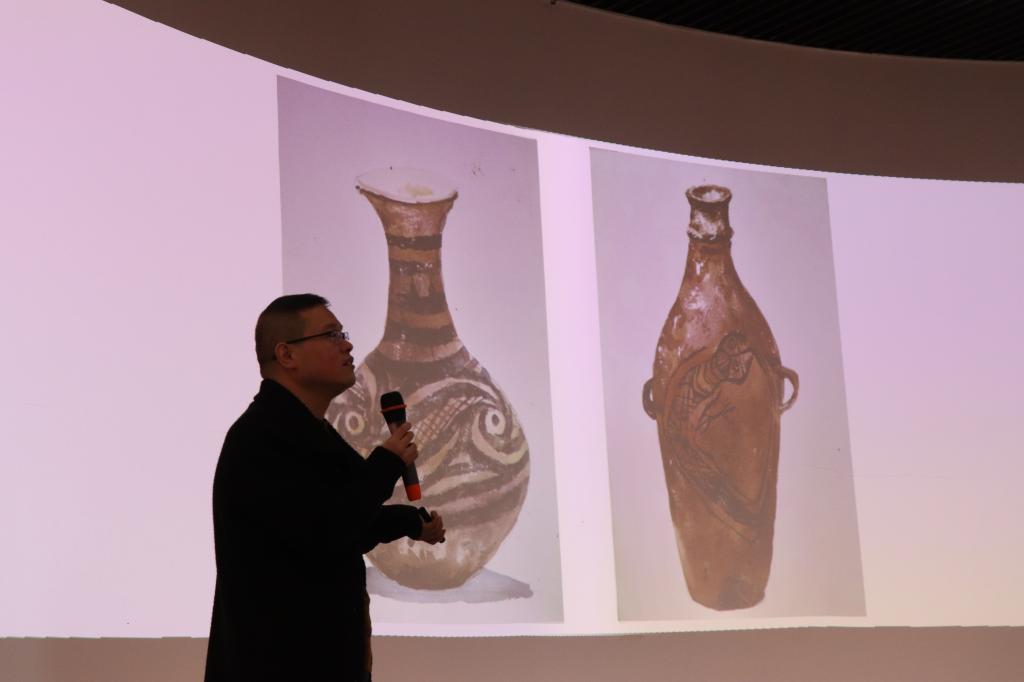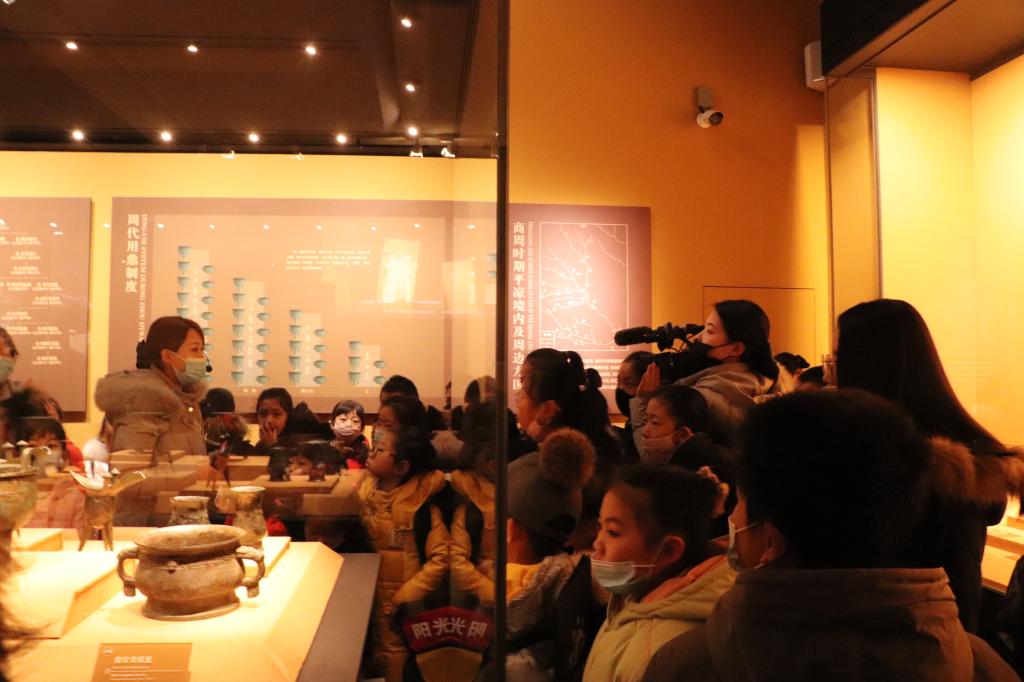 本次活动以“博古知新学堂之美育讲座”拉开序幕,开展了“‘感知平凉文脉——研学+美育’油画棒文物绘研学”主题讲座。陈老师以生动的介绍,让孩子们通过沉浸式情感体验来实现审美与历史文化的融合。接着社教老师带领孩子们进入展厅探寻“历史小秘密”,参观平凉出土的各类青铜器,近距离观察青铜器的类型和装饰纹样,并在现场开始绘画比赛。