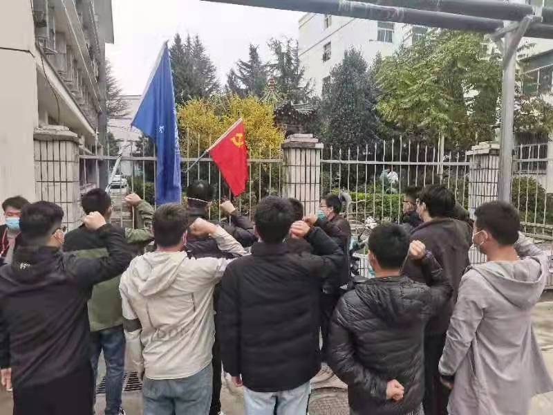 在秋实公寓,临时党支部书记带领师生党员面向党旗庄严宣誓,他表示,支部全体党员同志要认真学习习近平总书记关于疫情防控的重要指示,深入贯彻落实甘肃省、天水以及集团疫情防控工作的相关决策和部署,让每一项防控措施落细落实、执行到位。他强调一个党员就是一面旗帜,面突如其来的疫情,秋实公寓的员工党员更要树立坚定的决心和信心积极主动参与到疫情防控任务中,在全公寓员工中发挥先锋模范作用,在疫情防控工作中带好头、作表率。