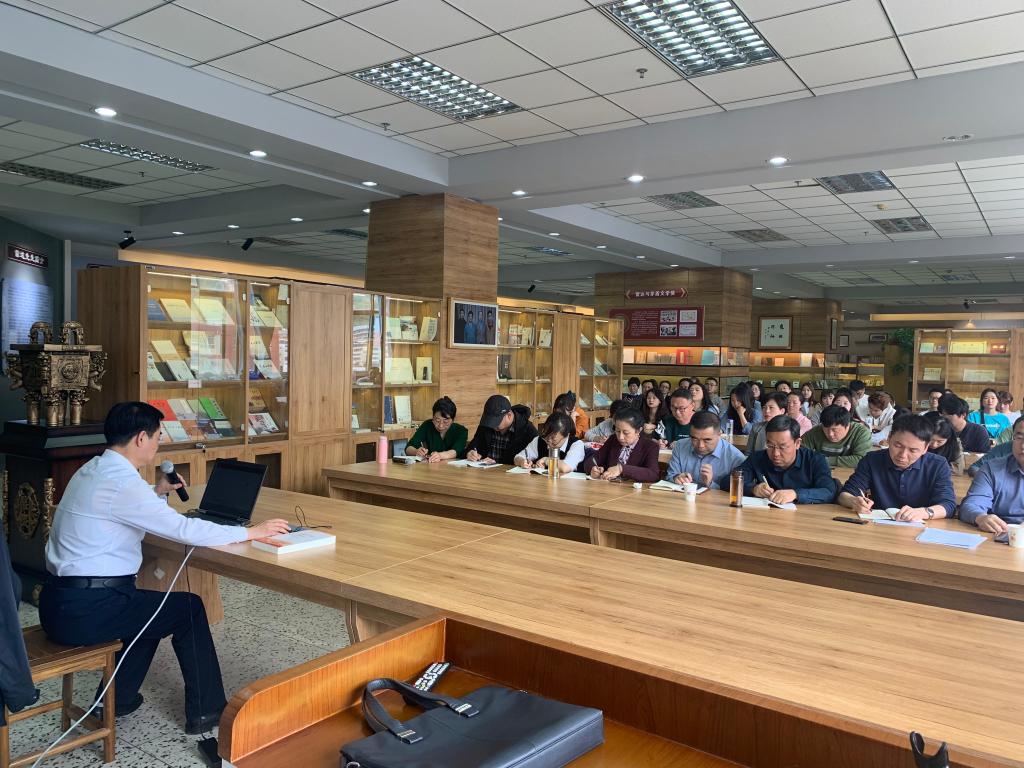 为了更好地学习党史,推进党史学习教育走深走实,5月6日,公司党委常委、副董事长汪聚应为美术与艺术设计公司党总支、图书馆直属党支部在图书馆开展党史学习教育专题党课,美术与艺术设计公司党总支、图书馆直属党支部全体师生党员参加了本次专题党课学习。党课由图书馆直属党支部副书记王金霞主持。